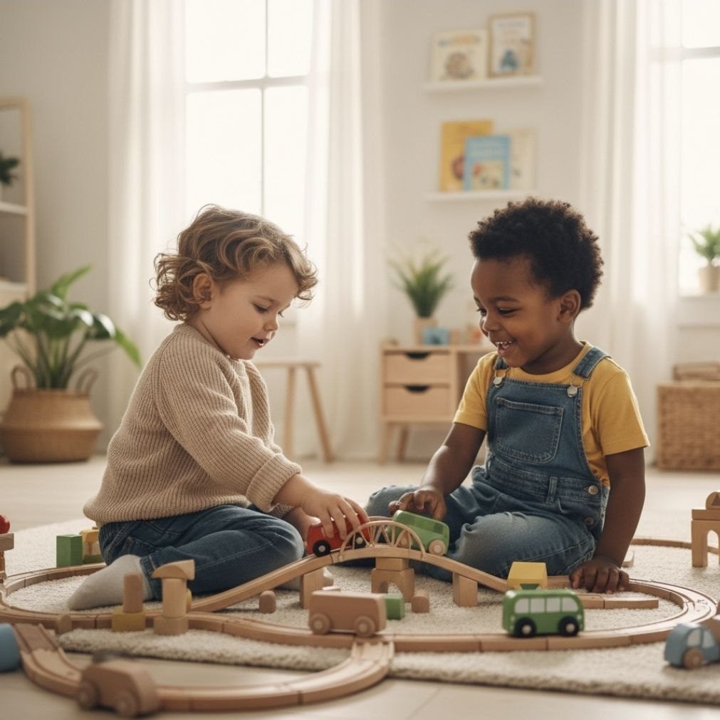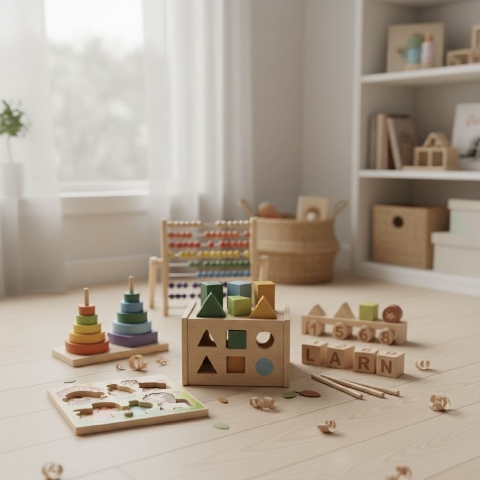 Houten speelgoed, gifvrij en perfect om de creativiteit van je kind te stimuleren.